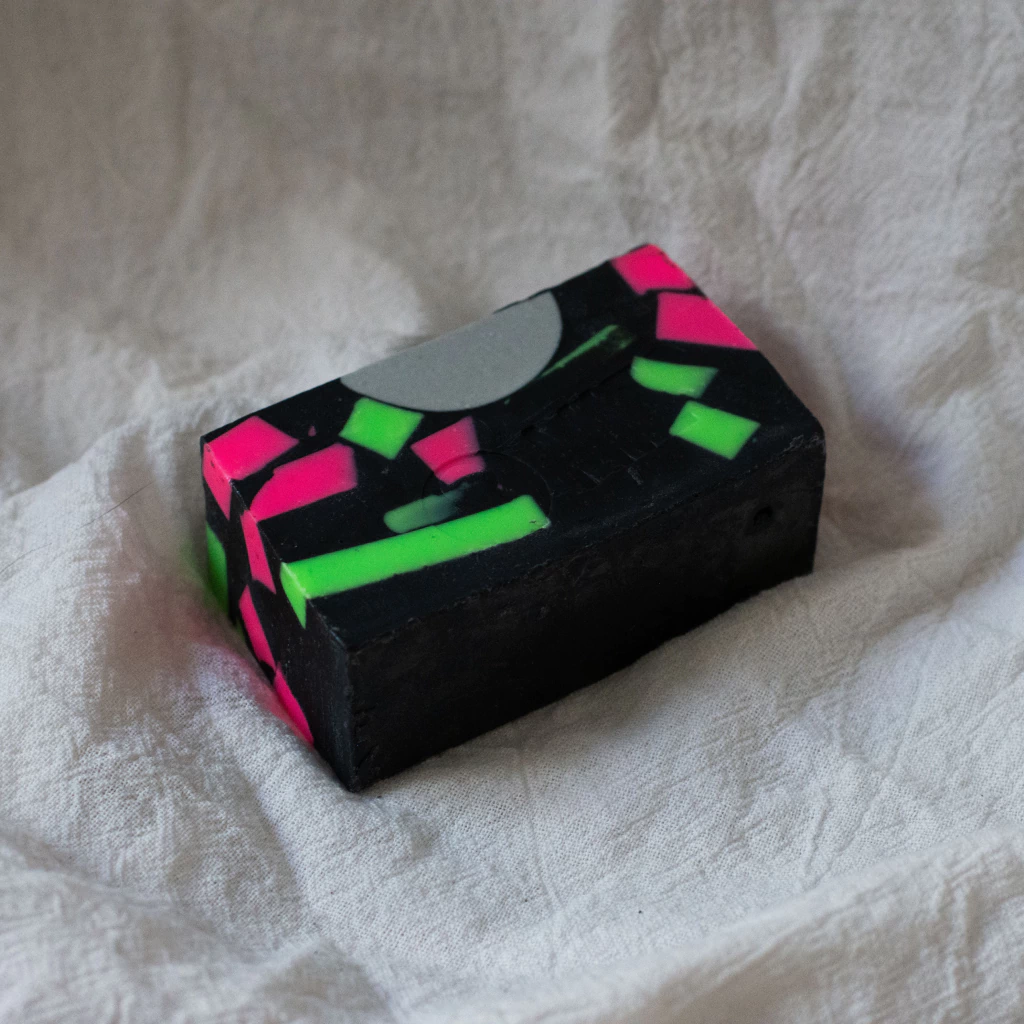 Este jabón tan vibrante, destacado por sus colores llamativos y fluorescentes, es perfecto para quienes buscan un producto de cuidado personal único y colorido 🌈. ¡Tiene toda la onda!